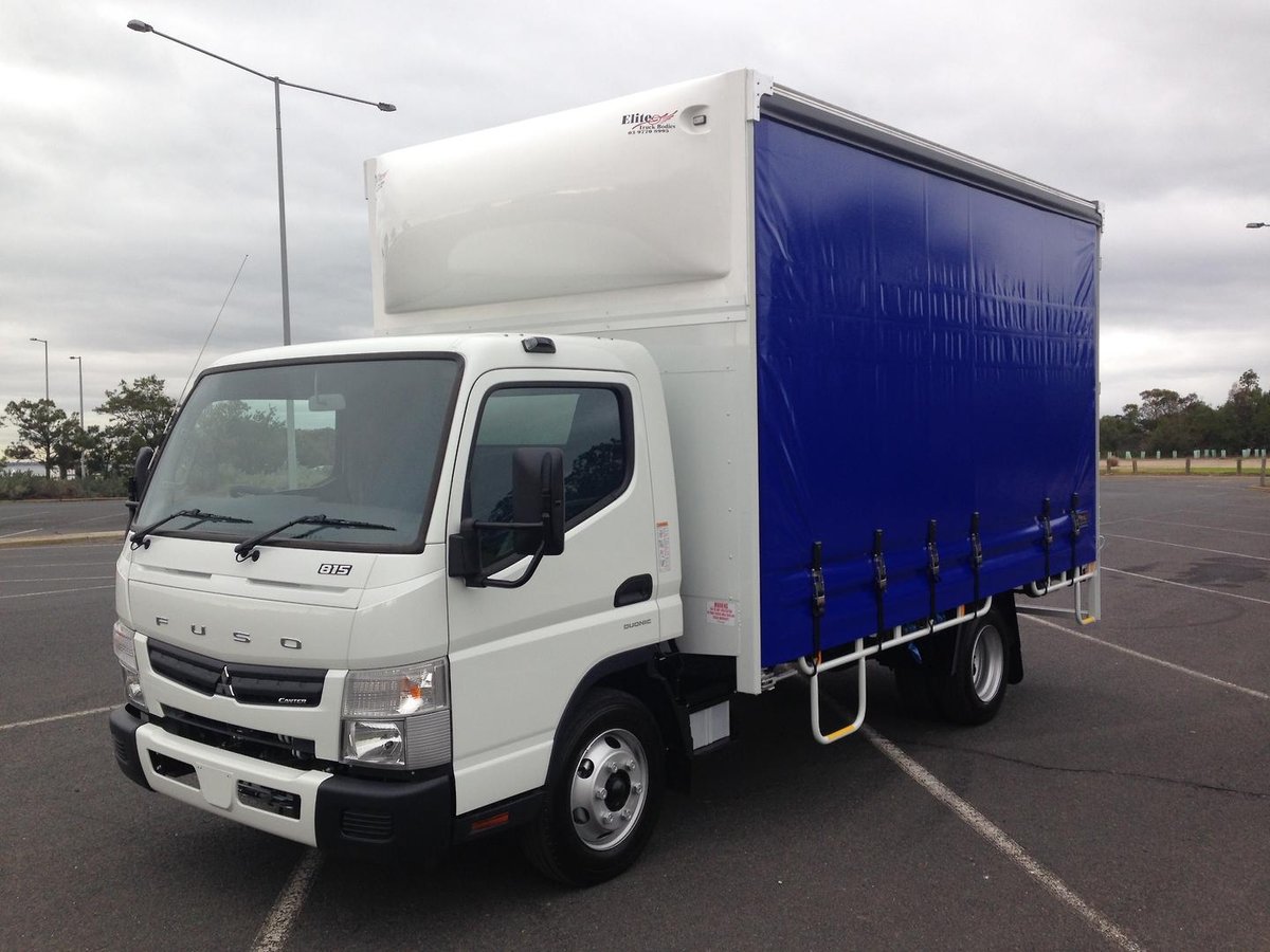 This 2024 Fuso Canter 815 Wide Cab AMT ready to go with a 6 Pallet Curtain Sider is truly unbeatable, with its class-leading payload and a quality built local body, making it a great choice for those in need of a reliable truck. It boasts a low tare weight and a 6-speed AMT transmission.