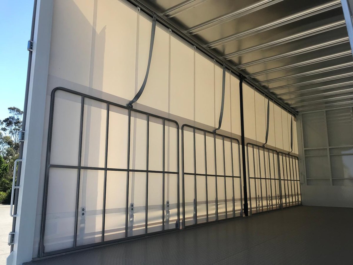 The 14 Pallet Curtainsider is built by one of our local builders, Elite Truck Bodies. The 14 pallet curtain sider is 9000mm long x 2490mm wide with a 2700mm side load. 5mm steel checker plate floor, STD Buckle curtains, 1500mm high gates, 7x load binders, front and rear tensioners and a Nose cone.